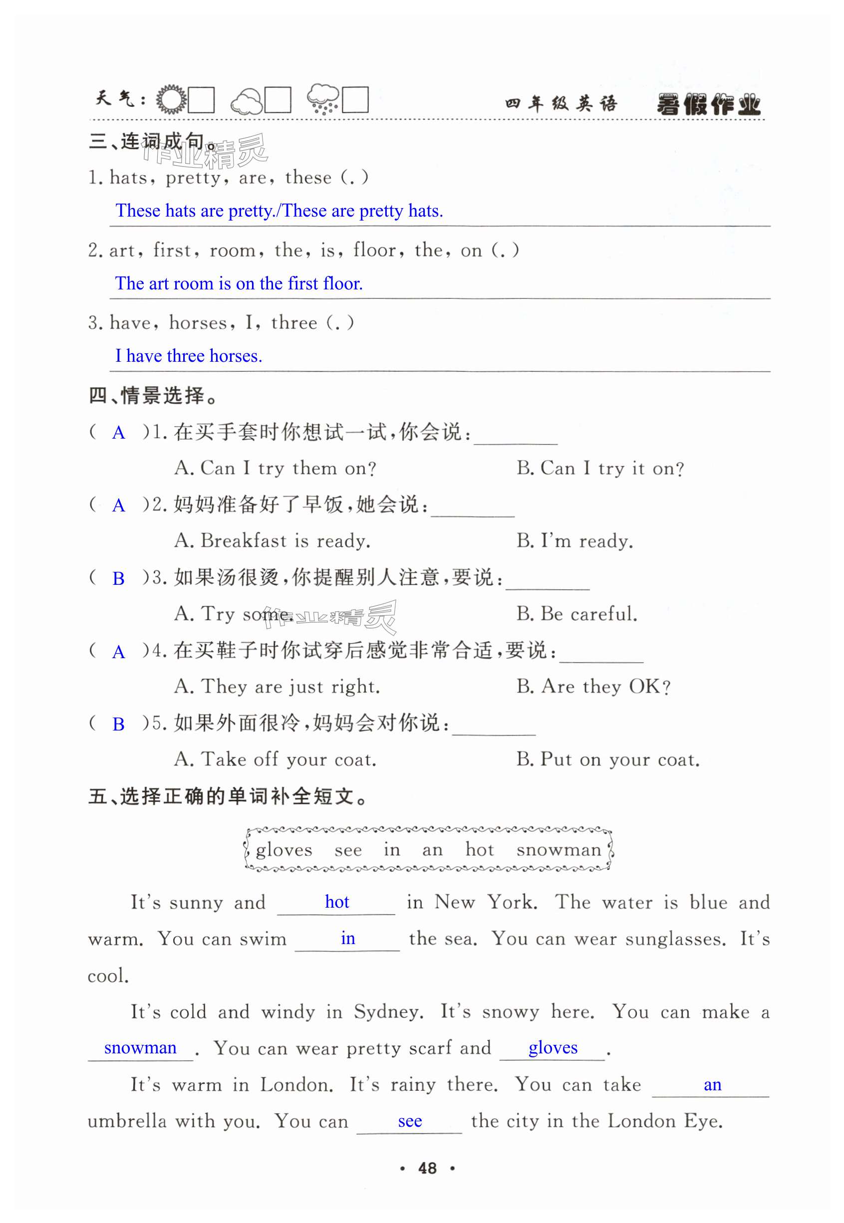 注:目前有些书本章节名称可能整理的还不是很完善,但都是按照顺序排列的,请同学们按照顺序仔细查找。练习册 2025年暑假作业快乐的假日四年级英语 答案主要是用来给同学们做完题方便对答案用的,请勿直接抄袭。