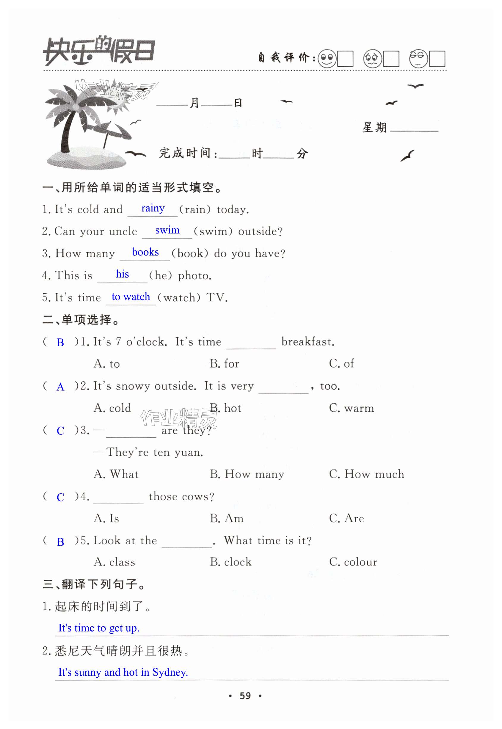 注:目前有些书本章节名称可能整理的还不是很完善,但都是按照顺序排列的,请同学们按照顺序仔细查找。练习册 2025年暑假作业快乐的假日四年级英语 答案主要是用来给同学们做完题方便对答案用的,请勿直接抄袭。