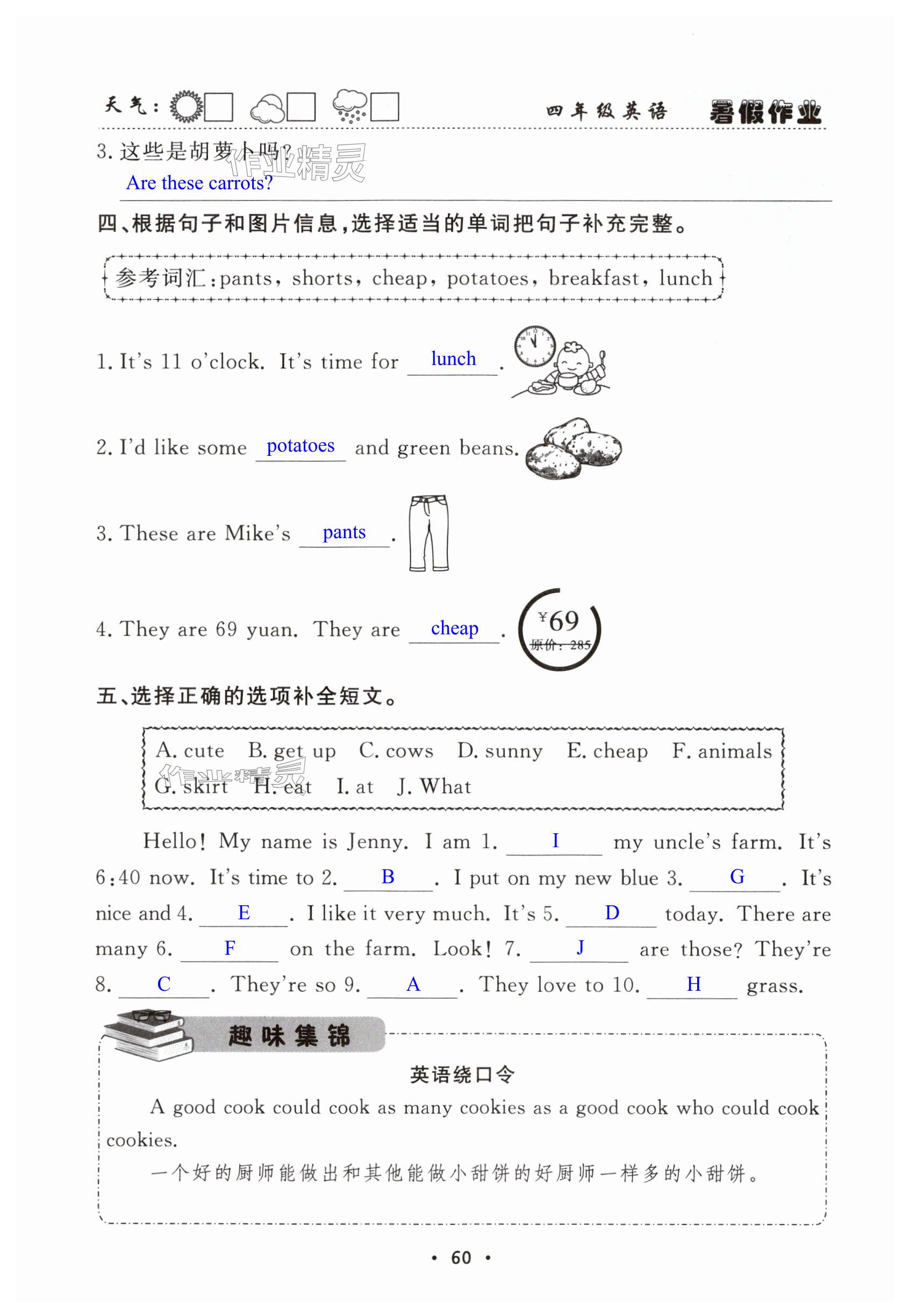 注:目前有些书本章节名称可能整理的还不是很完善,但都是按照顺序排列的,请同学们按照顺序仔细查找。练习册 2025年暑假作业快乐的假日四年级英语 答案主要是用来给同学们做完题方便对答案用的,请勿直接抄袭。