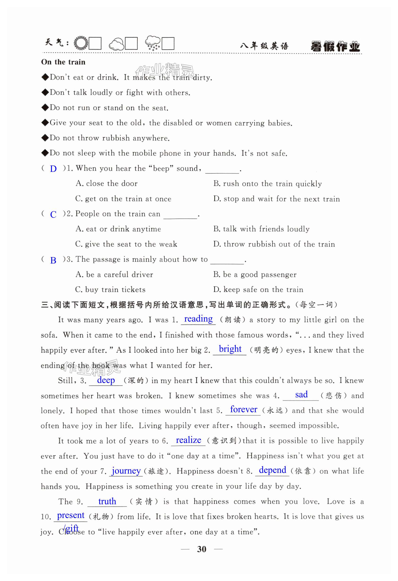 注:目前有些书本章节名称可能整理的还不是很完善,但都是按照顺序排列的,请同学们按照顺序仔细查找。练习册 2025年暑假作业快乐的假日八年级英语 答案主要是用来给同学们做完题方便对答案用的,请勿直接抄袭。