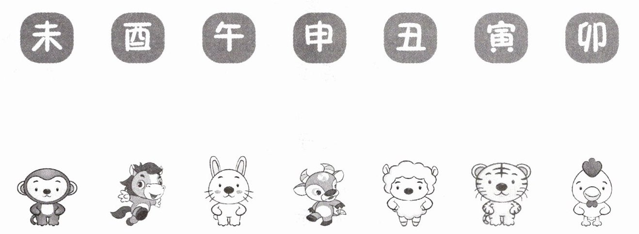未—羊;酉—鸡;午—马;申—猴;丑—牛;寅—虎;卯—兔。