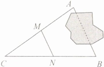 2. 如下图,要测量被池塘隔开的$A$,$B$两点的距离,小明在$AB外选一点C$,连接$AC$,$BC$,并分别找出它们的中点$M$,$N$,连接$MN$,现测得$MN = 45$米,那么$AB = $