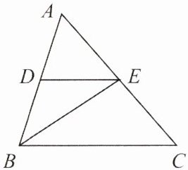 3. 如下图,$\triangle ABC$中,$D是AB$的中点,$DE// BC$,连接$BE$,若$S_{\triangle DEB} = 1$,则$S_{\triangle BCE}$的值为(