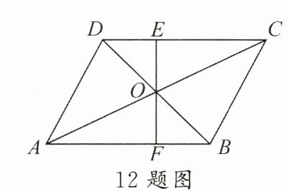 12. 如下图,在$□ ABCD$中,$EF过对角线的交点O$. 如果$AB = 4\ cm$,$AD = 3\ cm$,$OF = 1\ cm$,则四边形$BCEF$的周长为____