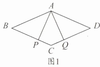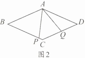 24. 已知点$P$,$Q分别在菱形ABCD的边BC$,$CD$上滑动(点$P不与B$,$C$两点重合),且$\angle PAQ = \angle B$.