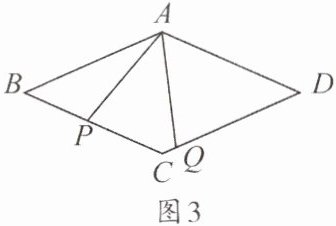 (3) 如图3,若$AB = 4$,$\angle B = 60^{\circ}$,请直接写出四边形$APCQ$的面积.