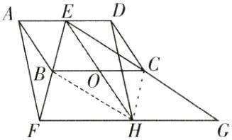 23. 如图,点$E为□ ABCD的边AD$上的一点,连接$EB$并延长,使$BF = BE$,连接$EC$并延长,使$CG = CE$,连接$FG$. $H为FG$的中点,连接$DH$,$AF$.