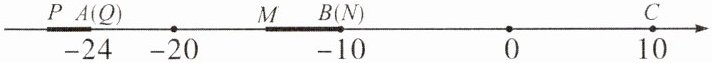 15. 数轴上有 $A$,$B$,$C$ 三个点,分别表示有理数 $-24$,$-10$,10,已知两条动线段 $PQ$ 和 $MN$,$PQ = 2$,$MN = 4$,如下图,线段 $MN$ 以每秒 1 个单位长度的速度从点 $B$ 开始一直向右匀速运动,线段 $PQ$ 同时以每秒 3 个单位长度的速度从点 $A$ 开始向右匀速运动,当点 $Q$ 运动到 $C$ 时,线段 $PQ$ 立即以相同的速度返回,当点 $P$ 运动到点 $A$ 时,线段 $PQ$,$MN$ 同时停止运动,设运动时间为 $t$ s(运动过程中,线段 $PQ$ 和 $MN$ 保持长度不变,且点 $P$ 总在点 $Q$ 左边,点 $M$ 总在点 $N$ 左边)。