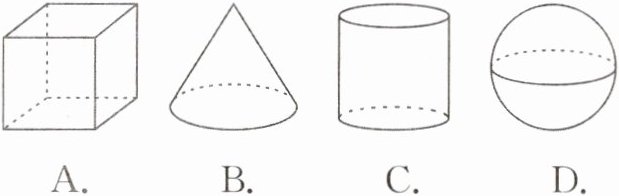 2. 下面摆放的正方体、圆锥、圆柱、球,其三视图都是正方形的是(