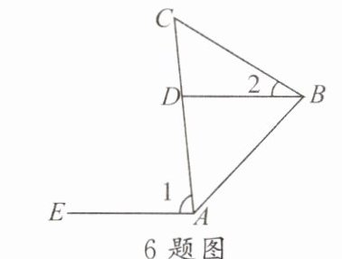 6. 如下图,$AE// DB$,$\angle 1 = 84^{\circ}$,$\angle 2 = 29^{\circ}$,则 $\angle C$ 的度数为(