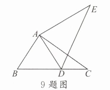 9. 如上图,$\triangle ABC≌\triangle ADE$,点 $D$ 落在 $BC$ 上,且 $\angle EDC = 70^{\circ}$,则 $\angle BAD$ 的度数为(