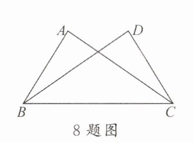 8. 如下图,已知 $\angle ACB = \angle DBC$,添加以下条件,不能判定 $\triangle ABC≌\triangle DCB$ 的是(