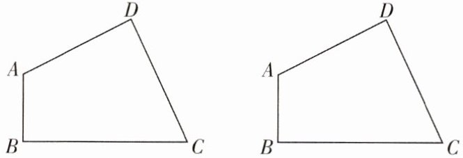 15. 有两块形状完全相同的不规则的四边形木板,如图所示,两位木匠工师傅通过测量可知 $ \angle B = \angle D = 90 ^ { \circ } $,$ A D = C D $,现要将其拼成正方形,思考一段时间后,一位木工师傅说“我可以将这两块木板拼成一个正方形.”另一位木工师傅说“可以将一块木板拼成一个正方形,两块木板拼成两个正方形.”两位师傅把每一块木板都只分割一次,你知道他们是怎么做的吗?画出图形,并说明理由.