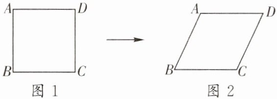 8. 延时课上,王林用四根长度都为4cm的木条制作了如图1所示的正方形,而后将正方形的BC边固定,平推成如图2的图形,并测得$∠B= 60^{\circ }$,则在此变化过程中,下列结论错误的是(