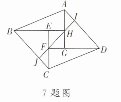 7. 如图,在平行四边形ABCD中,以BC和AD为斜边分别向内作等腰直角$\triangle BCE和等腰直角\triangle ADG$,延长BE和DG分别交AG和CE于H,F两点,直线FH分别交AD和BC于I,J两点.若四边形EFGH是正方形,$IJ= 6\sqrt {2}$,则平行四边形ABCD的面积是(