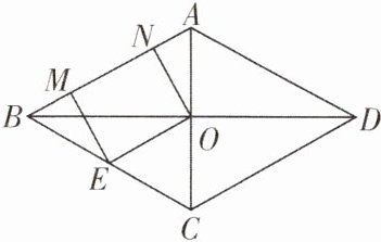 15. 如图,菱形ABCD的对角线AC,BD相交于点O,E是BC的中点,分别过点O,E作$ON\perp AB$,$EM\perp AB$,垂足分别为N,M.