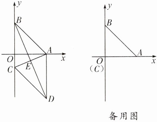 (2)如图1,若点C在y轴的负半轴上,且$AB= BC$,求点E的坐标;