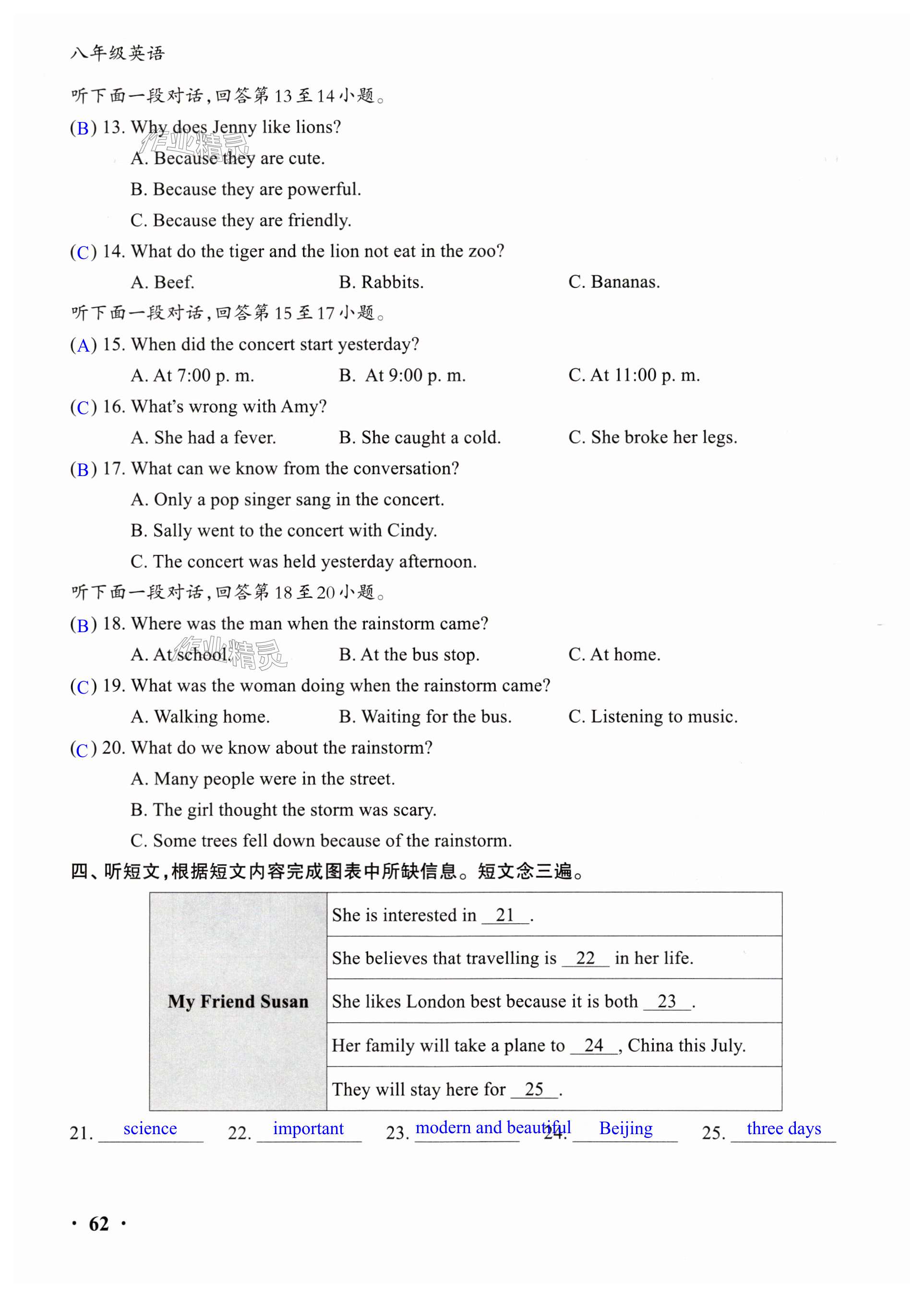 注:目前有些书本章节名称可能整理的还不是很完善,但都是按照顺序排列的,请同学们按照顺序仔细查找。练习册 2025年本土假期总复习暑假八年级英语 答案主要是用来给同学们做完题方便对答案用的,请勿直接抄袭。