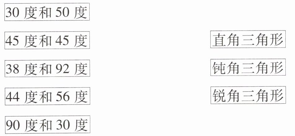 1. 连一连。在一个三角形中,已知其中两个角的度数,请你判断这个三角形是什么三角形?