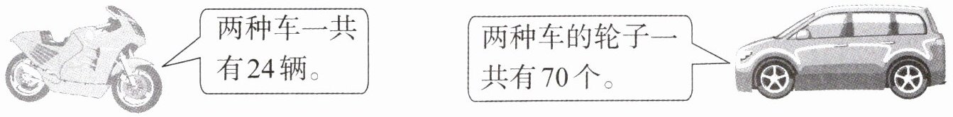 2. 在某个停车场里停着两轮摩托和四轮小汽车。每种车各有多少辆?