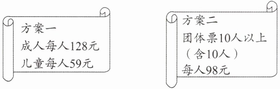 (2)$128×6+59×4=1004$(元) $98×(6+4)=980$(元) $1004>980$ 选择方案二