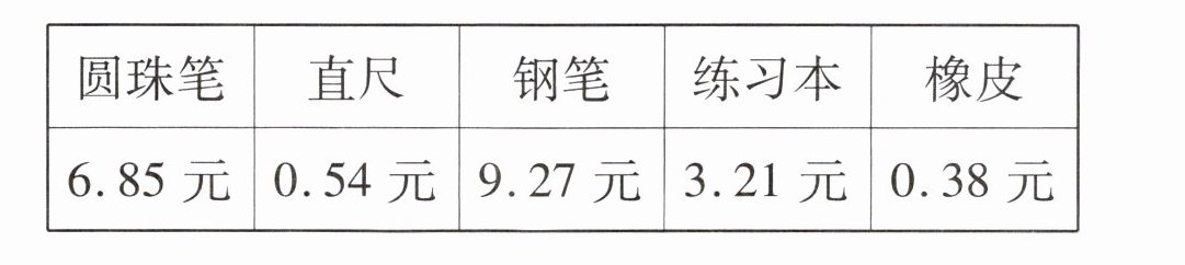 (1)一支钢笔比一支圆珠笔贵多少钱?