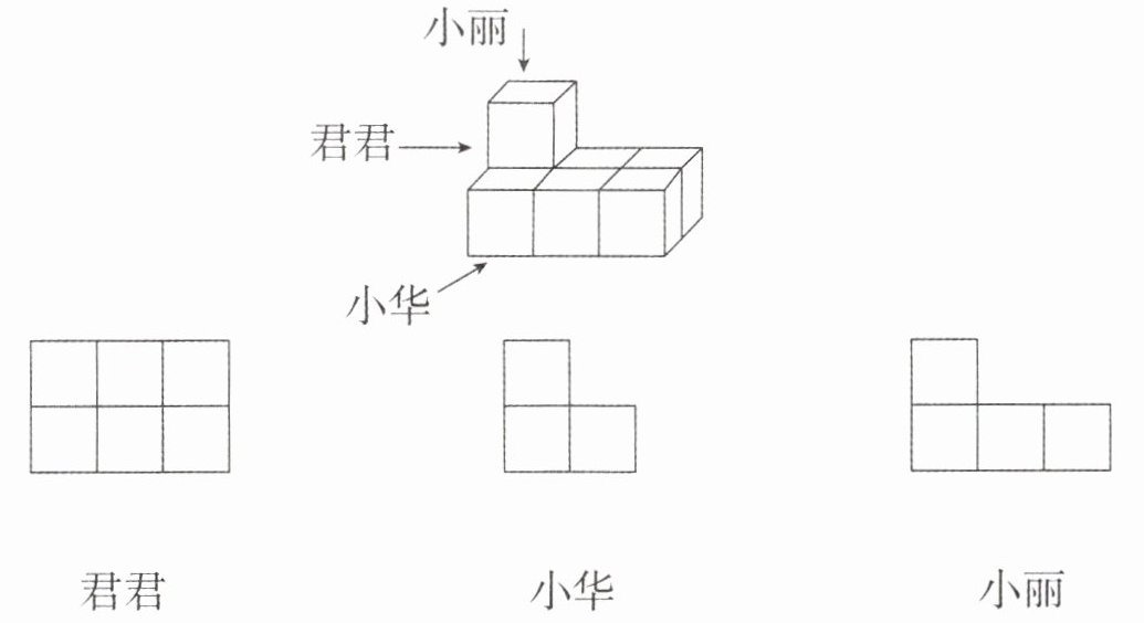 1. 观察下面物体,分别画出它从前面、左面、上面观察到的图形。