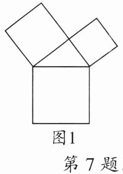 7. 勾股定理是人类最伟大的科学发现之一,在我国古算书《周髀算经》中早有记载.如图1,以直角三角形的各边为边分别向外作正方形,再把较小的两张正方形纸片按图2的方式放置在最大正方形内.若知道图中阴影部分的面积,则一定能求出( )