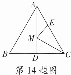 14. 如图,等边$\triangle ABC$的边长为6,AD是BC边上的中线,M是AD上的动点,E是边AC上一点,若$AE= 2$,则$EM+CM$的最小值为____.