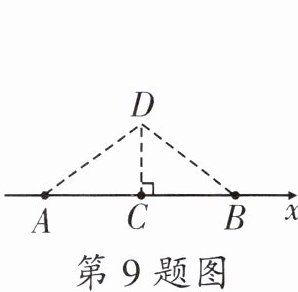 9. 如图,长为8cm的橡皮筋放置在x轴上,固定两端A和B,然后把中点C竖直往上拉升3cm至D点,则橡皮筋被拉长了____.