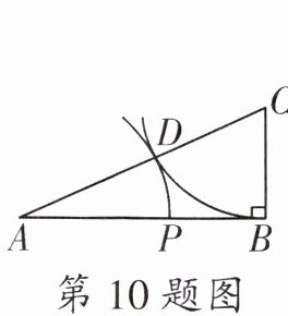 10. 如图,在$\triangle ABC$中,$∠ABC= 90^{\circ },AB= 2BC= 2$,在AC上截取$CD= CB$,在AB上截取$AP= AD$,则$\frac {AP}{AB}= $____.