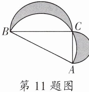 11. 如图,$\triangle ABC$中,$AC= 5,BC= 12,AB= 13$,以AB为直径的半圆过点C,再分别以BC,AC为直径向上作半圆,则阴影部分面积为____.