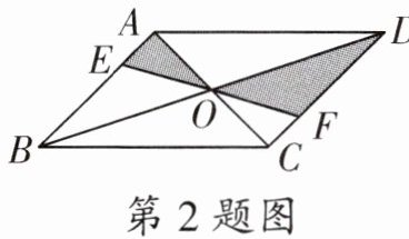 2. 如图,直线 $EF$ 过平行四边形 $ABCD$ 对角线的交点 $O$,分别交 $AB$,$CD$ 于点 $E$,$F$,那么阴影部分的面积是平行四边形 $ABCD$ 面积的______。