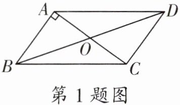 1. 如图,在平行四边形 $ABCD$ 中,两条对角线交于点 $O$,$AB \perp AC$,$AD = 5\ \text{cm}$,$OC = 2\ \text{cm}$,则对角线 $BD$ 的长为______$\text{cm}$。