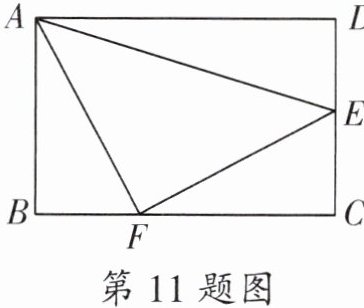 11. 如图,在矩形 $ABCD$ 中,点 $E$ 是 $CD$ 的中点,点 $F$ 是 $BC$ 上一点,且 $FC = 2BF$,连接 $AE$,$EF$,$AF$。若 $AB = 2$,$AD = 3$,则 $\angle AEF$ 的度数为______。