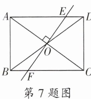 7. 如图,在矩形$ABCD$中,$AB = 6$,$BC = 8$,过对角线交点$O作EF \perp AC交AD于点E$,交$BC于点F$,则$DE$的长是 ( )