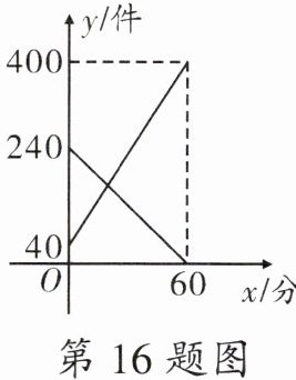 16. 某快递公司每天上午$9:00 - 10:00$为集中揽件和派件时段,甲仓库用来揽收快件,乙仓库用来派发快件,该时段内甲、乙两仓库的快件数量$y$(件)与时间$x$(分)之间的函数图象如图所示,那么当两仓库快递件数相同时,此刻的时间为 ( )