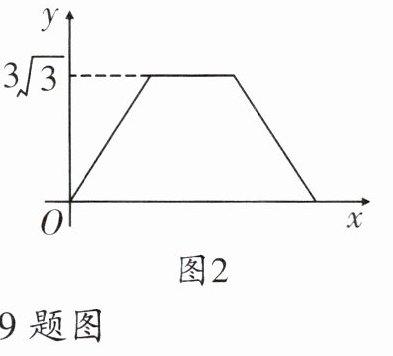 19. 如图 1,在菱形$ABCD$中,$\angle A = 60^\circ$,动点$P从点A$出发,沿折线$AD \to DC \to CB$方向匀速运动,运动到点$B$停止,设点$P的运动路程为x$,$\triangle APB的面积为y$,$y与x$的函数图象如图 2 所示,则$AB$的长为 ( )