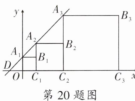 20. 如图,直线$y = x + 1与x轴交于点D$,与$y轴交于点A_1$,把正方形$A_1B_1C_1O$,$A_2B_2C_2C_1和A_3B_3C_3C_2$按如图所示方式放置,点$A_2$,$A_3在直线y = x + 1$上,点$C_1$,$C_2$,$C_3在x$轴上,按照这样的规律,则正方形$A_{2023}B_{2023}C_{2023}C_{2022}中的点B_{2023}$的坐标为______.