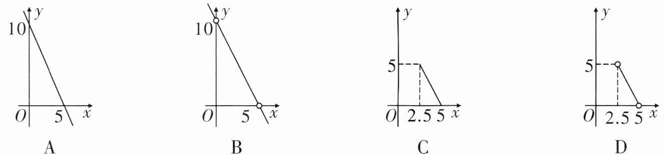 3. 已知等腰三角形的周长是 10,设底边长为$y$,腰长为$x$,则下列图象中,能反映$y与x$之间函数关系的是 ( )