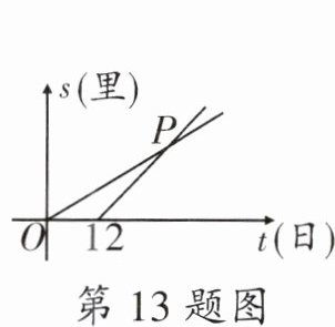 13. 元朝朱世杰的《算学启蒙》一书记载:“今有良马日行二百四十里,驽马日行一百五十里.驽马先行一十二日,问良马几何日追及之.”如图是两匹马行走路程$s关于行走时间t$的函数图象,则两图象交点$P$的坐标是______.