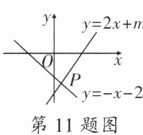 11. 如图,已知一次函数$y = -x - 2与y = 2x + m的图象相交于点P(n,-4)$,则关于$x的不等式组\begin{cases}2x + m < -x - 2,\\-x - 2 < 0,\end{cases} $的解集为______.