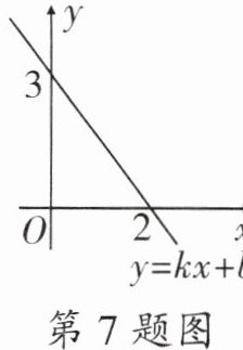 7. 如图,已知一次函数$y = kx + b的图象与x$轴、$y轴分别交于点(2,0)$,$(0,3)$.有下列结论:①该图象经过点$(1,-3)$;②关于$x的方程kx + b = 0的解为x = 2$;③关于$x的方程kx + b = 3的解为x = 0$;④当$x > 2$时,$y < 0$.其中正确的是 ( )