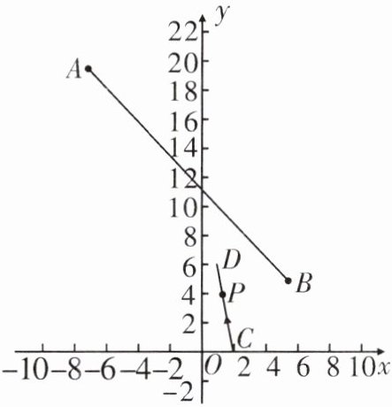 (1)设直线AB的解析式为y=kx+b,把A(-8,19),B(6,5)代入上式,得$\begin{cases} -8k+b=19, \\ 6k+b=5, \end{cases}$解得$\begin{cases} k=-1, \\ b=11. \end{cases}$