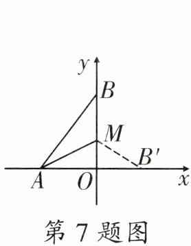7. 如图,在平面直角坐标系中,点$A的坐标是(-3,0)$,点$B的坐标是(0,4)$,点$M是OB$上一点,将$\triangle ABM沿AM$折叠,点$B恰好落在x轴上的点B'$处,则点$M$的坐标为______.