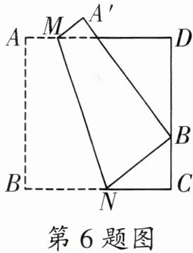 6. 如图,四边形$ABCD是边长为9$的正方形纸片,将其沿$MN$折叠,使点$B落在CD边上的点B'$处,点$A的对应点为点A'$,$B'C = 3$,则$AM$的长为______.
