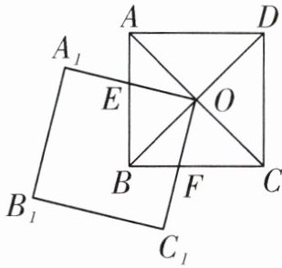 5. 如图,正方形ABCD的对角线AC和BD相交于点O,O又是正方形$ A _ { 1 } B _ { 1 } C _ { 1 } O $的一个顶点,$ O A _ { 1 } $交AB于点E,$ O C _ { 1 } $交BC于点F.