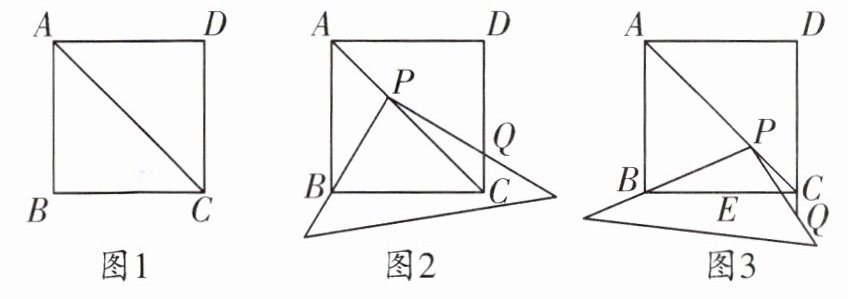 7. 操作:将一把三角尺放在如图1的正方形ABCD中,使它的直角顶点P在对角线AC上滑动,直角的一边始终经过点B,另一边与射线DC相交于点Q.