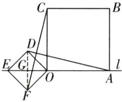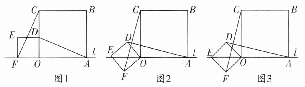 (2)小辉将正方形ODEF绕点O逆时针旋转,使点E旋转至直线l上,如图3,请你求出CF的长.