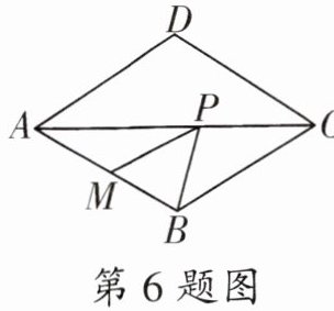 6. 如图,在菱形 $ABCD$ 中,$\angle BAD = 60^{\circ}$,点 $M$ 是 $AB$ 的中点,$P$ 是对角线 $AC$ 上的一个动点,若 $PM + PB$ 的最小值是 $9$,则 $AB$ 的长是______.